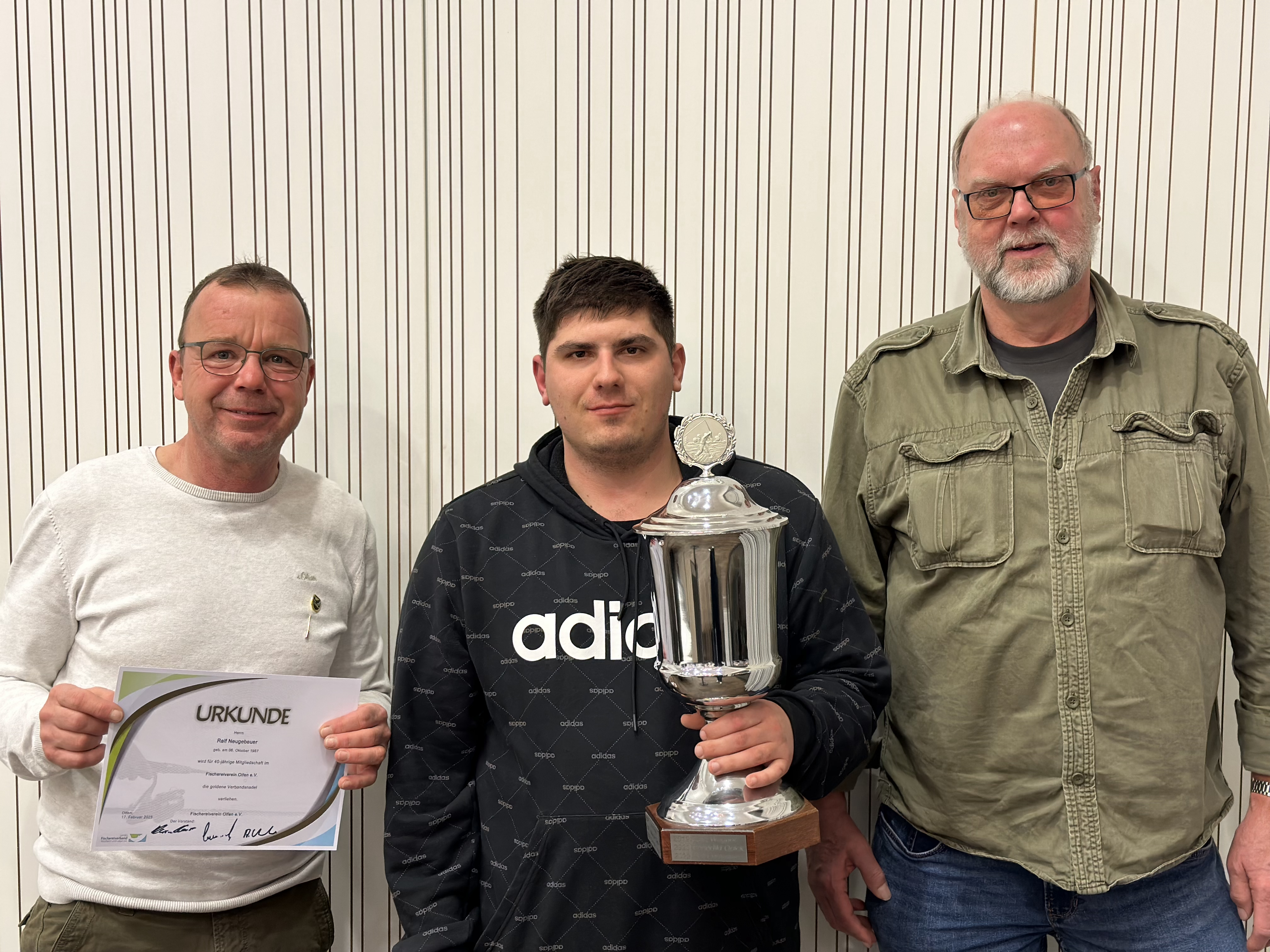 Ralf Neugebauer, Heinrich Pohlmann und Roland Schwenke (nicht anwesend) wurden durch den Vorsitzenden Claus Bunte geehrt, für die 40-Jährige Mitgliedschaft im Fischereiverein Olfen e.V.